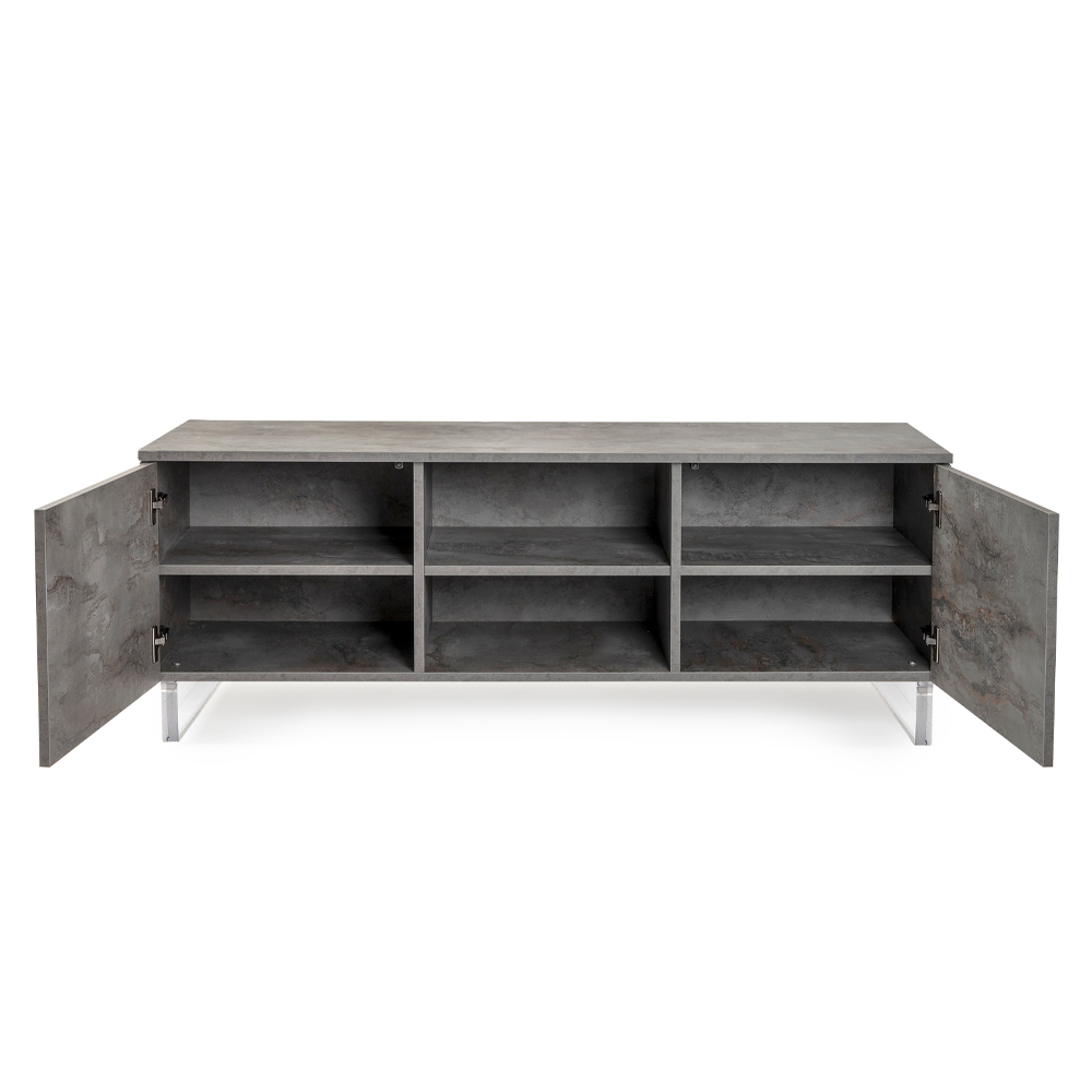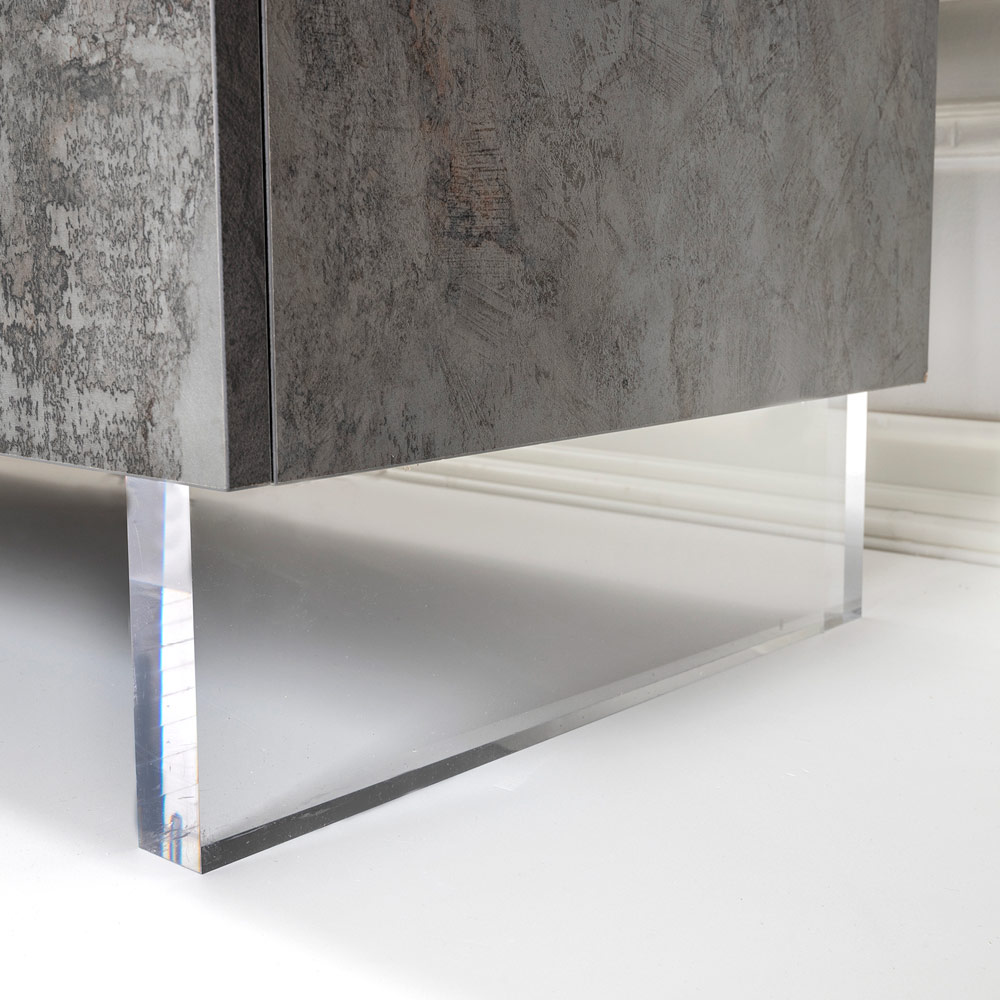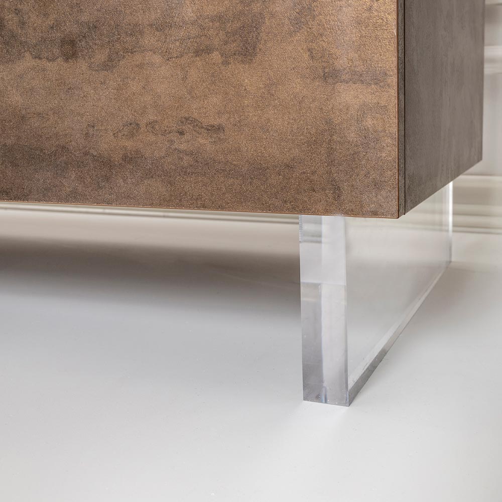 هذه الخزانة الجانبية، المُعلّقة على أرجل من زجاج شبكي شفاف، تُضفي شعورًا بالطفو في الفضاء، مُضفيةً لمسةً بصريةً فريدةً ومُدهشةً . افتح أبوابها المُفصّلة لتكتشف مساحةً داخليةً واسعةً، بأرففٍ مُجهّزةٍ للكتب والأشياء والتذكارات، مُنظّمةً بأقصى درجات الكفاءة.