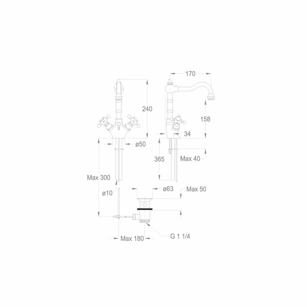 خلاط حوض غسيل كلاسيكي بفتحة واحدة على سطح العمل مصنوع من النحاس المطلي بالكروم بارتفاع 240 مم ومسافة مركزية 170 مم مع تصريف ورافعة قابلة للرفع. صُنع بالكامل في إيطاليا باستخدام مواد عالية الجودة مطابقة للمعايير الأوروبية. يُمكن تركيب هذا الخلاط في الأعلى، وهو مُجهز بمُهوّئ ورأس سيراميكي بزاوية 180 درجة. يُوصى به لنظام توفير الطاقة الذي يُوفر 6 لترات/دقيقة من المياه، وفوهته الدوارة، ووصلاته الصلبة.