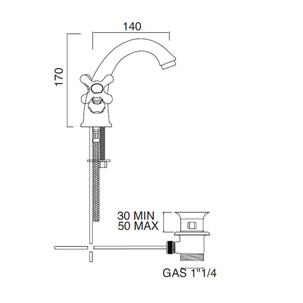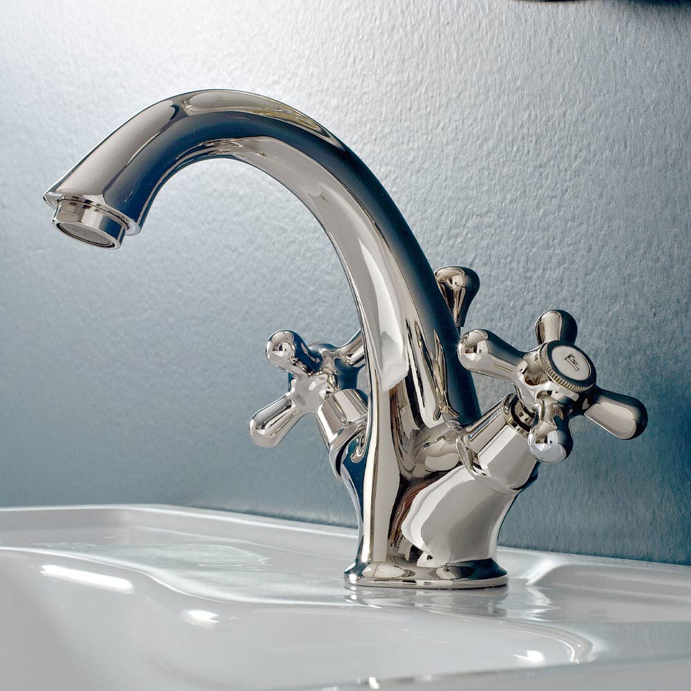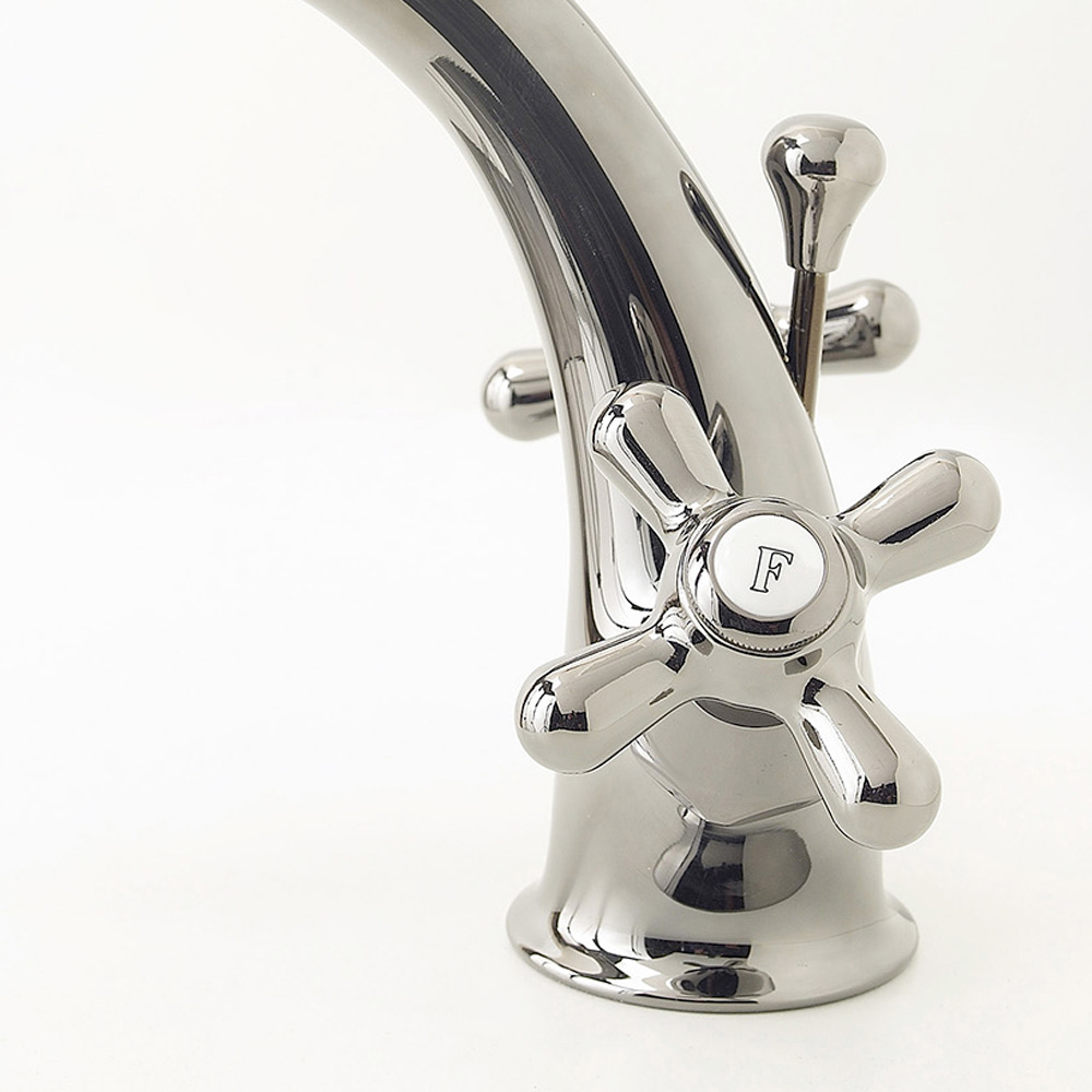 صنبور حوض غسيل بفتحة واحدة مع تصريف على الطراز الكلاسيكي مصنوع من النحاس عالي الجودة صنع في إيطاليا.