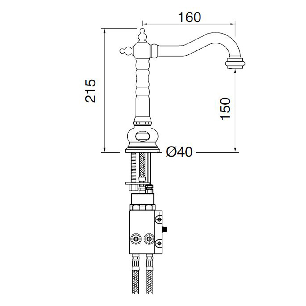 صنبور حوض إلكتروني بفتحة واحدة بتصميم كلاسيكي مصنوع من النحاس عالي الجودة؛ صنع في إيطاليا.