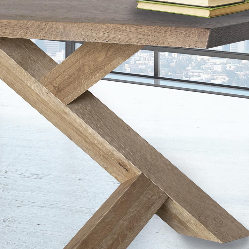 طاولة داخلية ذات سطح من خشب البلوط الصلب المعقود لون بني . القاعدة مصنوعة من ساقين من الخشب الصلب . المنتج مصنوع بالكامل في توسكانا ، باستخدام مواد عالية الجودة ، مع مراعاة الأثر البيئي ، واستخدام مواد طبيعيةومنتجات غير سامة . إمكانية التمديد متاحة بفضل أدلة من الفولاذ المقاوم للصدأ لسهولة الفتح.