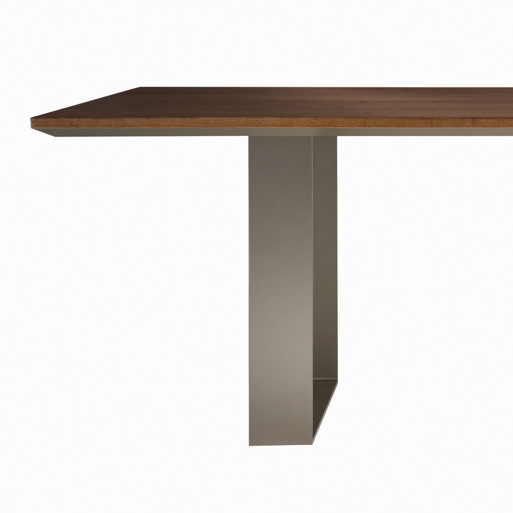 طاولة طعام مصنوعة في إيطاليا، تتكون من ساقينحديديتين وسطح من خشب البلاك بورد المصمت مع دعامة من خشب MDF. قطعة ديكور أنيقة بتصميم بسيط وعصري للغاية، مصممة لتضفي لمسةً مميزة على أي مساحة معيشة. تصميمها بسيط للغاية، بأشكاله البسيطة، وسطحه المستطيل المرتكز على ساقين، بحرفية عالية، يضفي لمسةً بصرية ديناميكية وأنيقة.