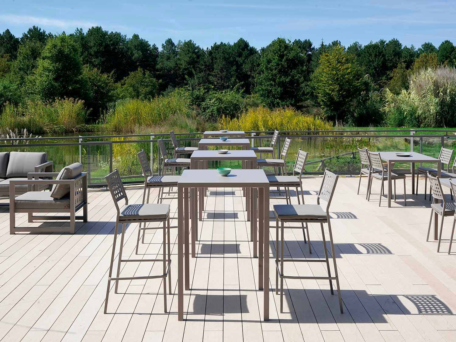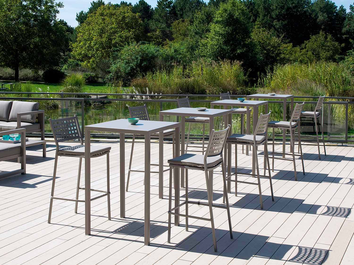طاولة بار خارجية مصنوعة من الحديد المجلفن المطلي بالمسحوق ذاتي التسوية مصنوع في إيطاليا.