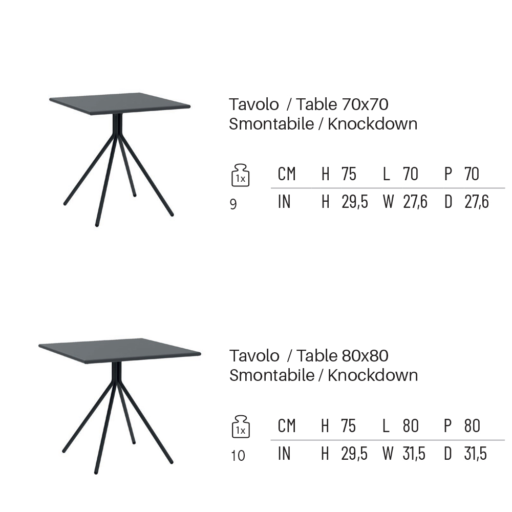 طاولة حديقة مربعة بهيكل من الفولاذ المجلفن، مصنوعة بنسبة 100% في إيطاليا