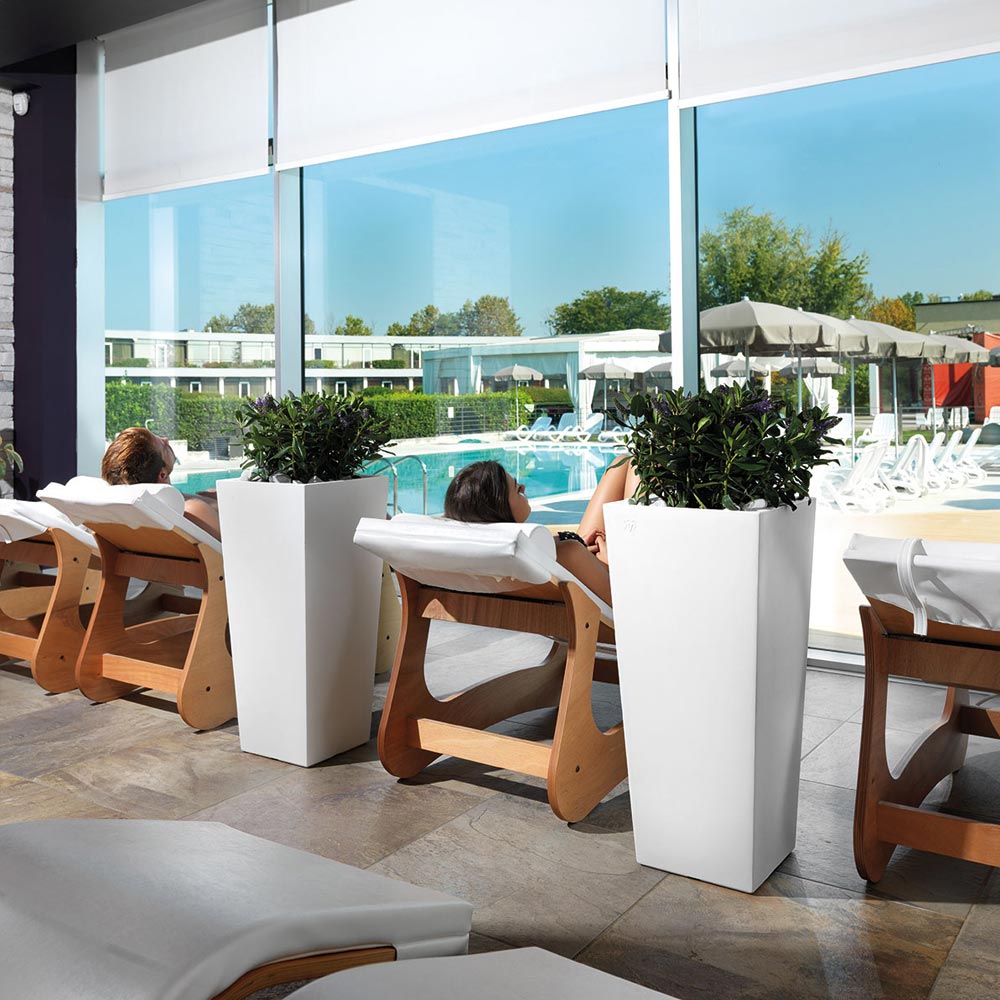 تم تصميم هذا المزهرية الخارجية لإثراء المساحات الخارجية بمناظر طبيعية رائعة، وهو متوفر بـ 7 تشطيبات مختلفة و3 أحجام وارتفاعات مختلفة مما يضفي شعورًا قويًا بالتنوع لخلق جو أنيق وفخم في نفس الوقت.