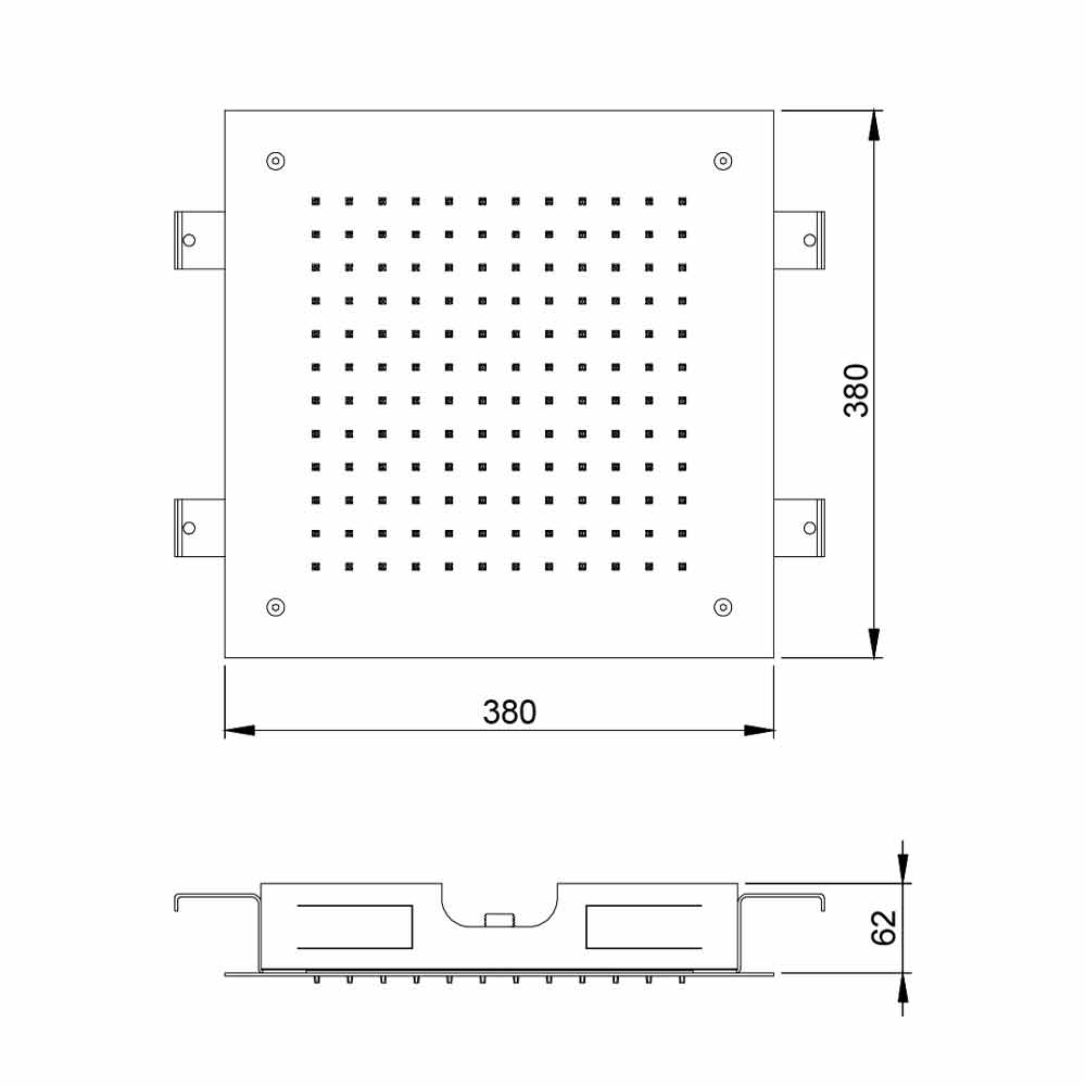 رأس دش مربع عالي الجودة من الفولاذ المقاوم للصدأ مع تقنية العلاج باللون، صنع في إيطاليا.