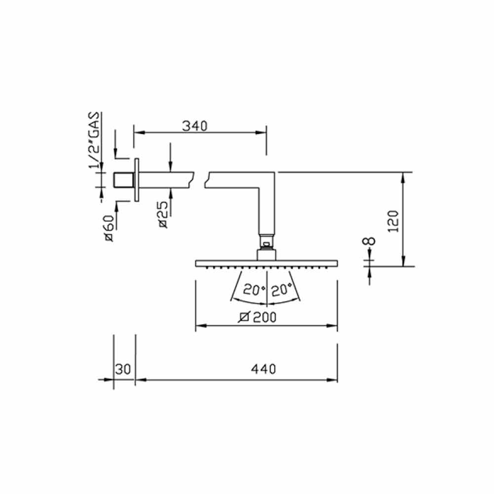 رأس دش مربع مثبت على الحائط مصنوع من الفولاذ المقاوم للحجر الجيري؛