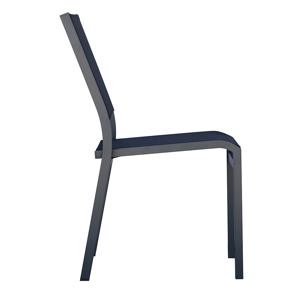 تلتقي البساطة والرقي في هذا الكرسي المصنوع من الألومنيوم والمنسوجات ، مثالي لتزيين أي مساحة خارجية بأناقة. يضمن هيكل الألومنيوم خفة الوزن والقوة والمتانة، بينما يوفر المقعد والظهر المصنوعان من المنسوجات راحةً هندسية وتهوية عالية، مثاليًا لفصل الصيف.