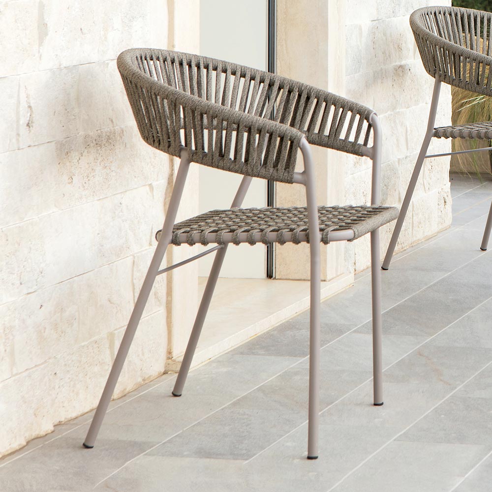 كرسي بذراعين قابل للتكديس مصنوع من الفولاذ المجلفن وحبل مكون من قطعتين صنع في إيطاليا.