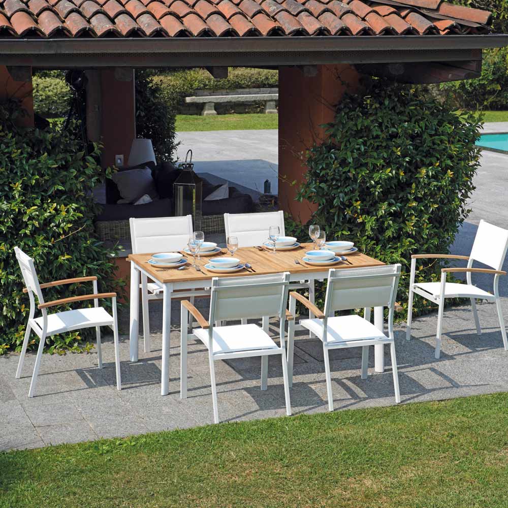 كرسيخارجي قابل للتكديس ، بهيكل من الألومنيوم ومقعد من قماش التكستيلينالعاجي المبطن ، ومُعزز بمساند ذراع أنيقة من خشب الساج . يجمع هذا الكرسي الخارجي بين التصميم والبساطة ، بفضل مواد بسيطة ومتينة تُضفي حيوية على منتج بتصميم أصلي وعصري، مثالي لأي مناسبة.