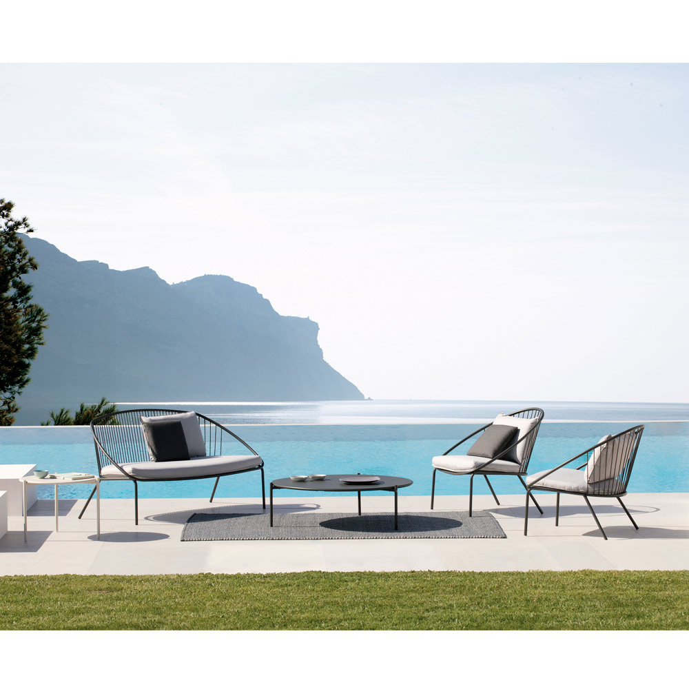 أريكة للمساحات الخارجية، مصنوعة بالكامل في إيطاليا . يُضفي طلاء الفولاذ المجلفن على المنتج مقاومة ممتازة للتآكل الناتج عن العوامل الجوية، مثل حموضة المطر أو الملوحة، مما يجعلها قطعة أثاث مثالية لأي مساحة مفتوحة.