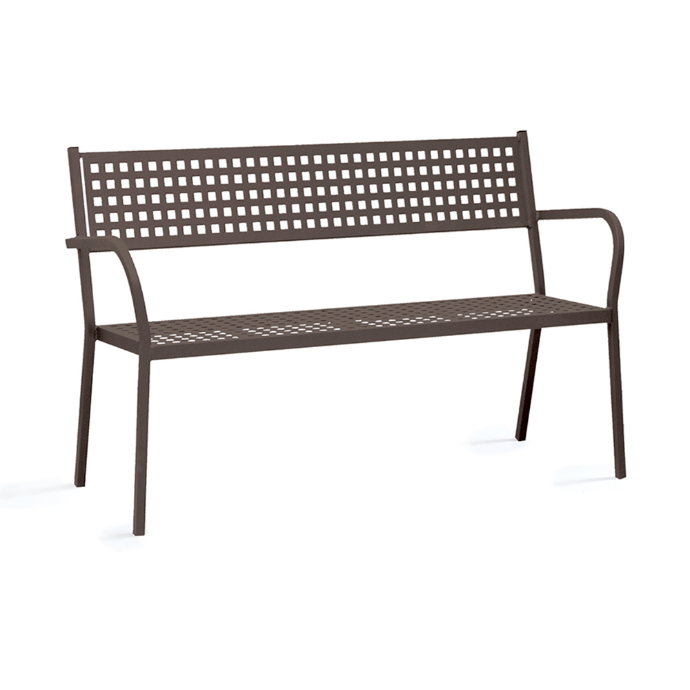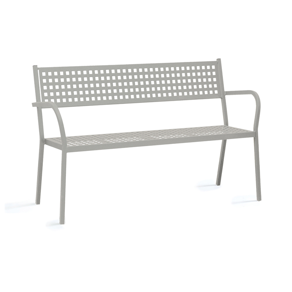 مقعد حديقة مريح مصنوع بالكامل في إيطاليا من الفولاذ المجلفن . المعالجة الدقيقة والمبتكرة للمادة تُمكّن قطعة الأثاث من التكيف مع أي مساحة خارجية، مما يجعلها مقاومة للعوامل الجوية، ويضمن سهولة وسرعة التنظيف والصيانة.