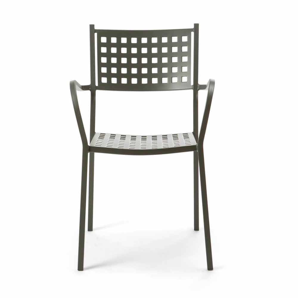 هذا الكرسي الخارجي مصنوع بالكامل في إيطاليا من الحديد المجلفن المطلي بمسحوق التصليد، وهو مثالي لمعالجة المنتجات الخارجية، ويوفر مقاومة مثالية لجميع العوامل الجوية. بفضل تشكيلة الألوان الواسعة المتاحة، يتناسب هذا الكرسي تمامًا مع أي مكان خارجي، ويضفي عليه لمسة عصرية ولونًا جذابًا بفضل خطوطه الأنيقة واستخدام أحدث المواد. كما يتميز بإمكانية تكديسه ، مما يتيح استغلال المساحات بشكل مثالي. متوفر بمساند للذراعين أو بدونها.