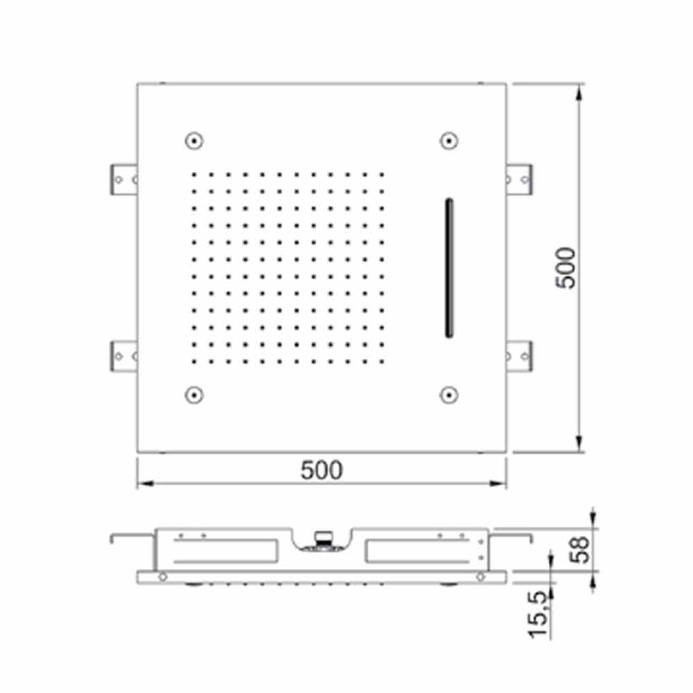 رأس دش مربع حديث من الفولاذ المقاوم للصدأ مع 3 فتحات، منتج عالي الجودة صنع في إيطاليا.