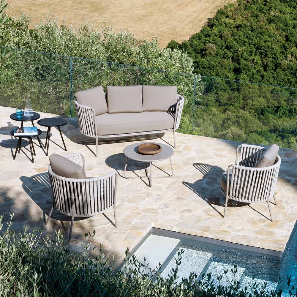 يضمن هيكل الفولاذ المقاوم للصدأ المتانة ومقاومة العوامل الجوية، بينما يُضفي نسيج الحبل لمسةً من الخفة والأناقة، مُحيطًا المقعد براحةٍ مُريحة. يضمن التصميم المريح والخطوط المُستديرة تجربة جلوسٍ مُمتعة ومريحة.