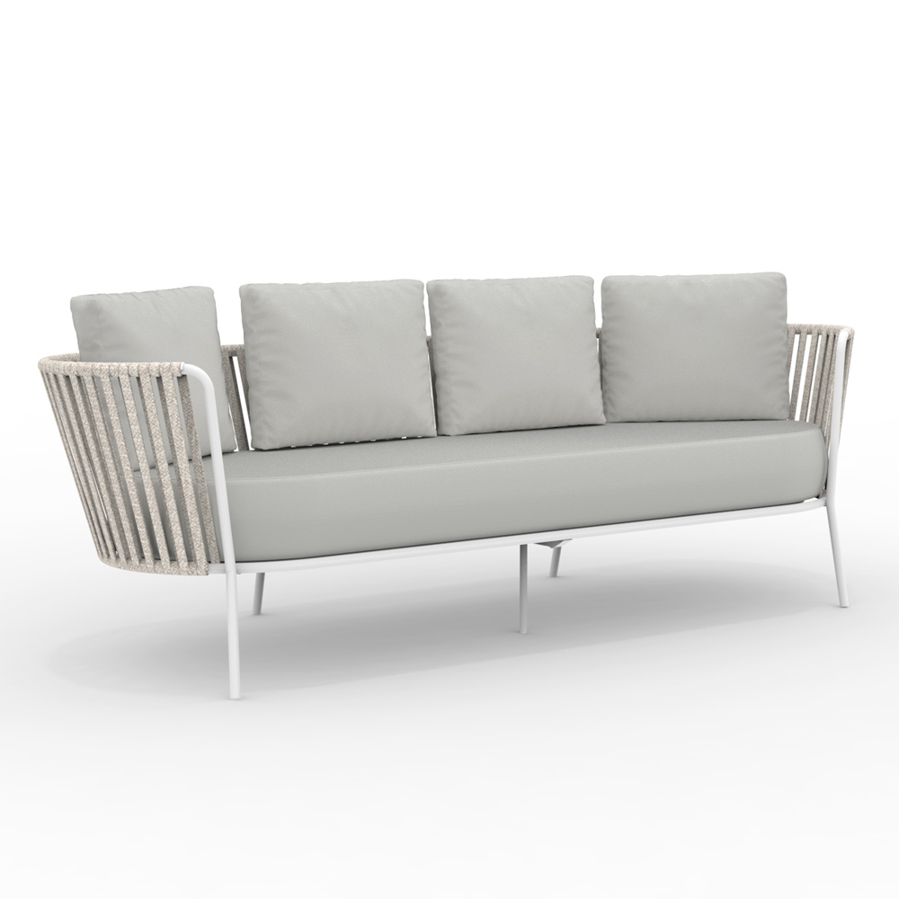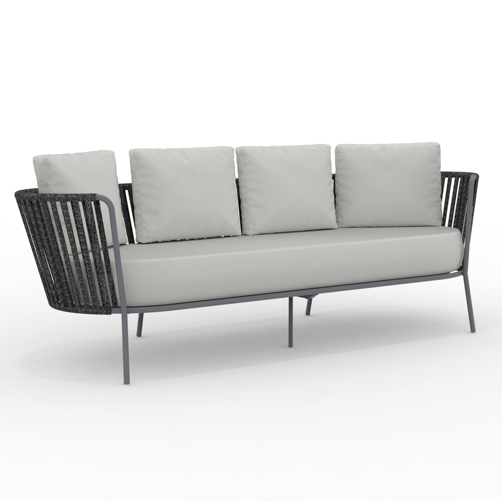 تجمع هذه الأريكة الخارجية الجميلة بين التصميم العصري والراقي مع مواد عالية الجودة، وهي مثالية لخلق بيئة ترحيبية ومتطورة في حديقتك أو تراسك أو شرفتك.