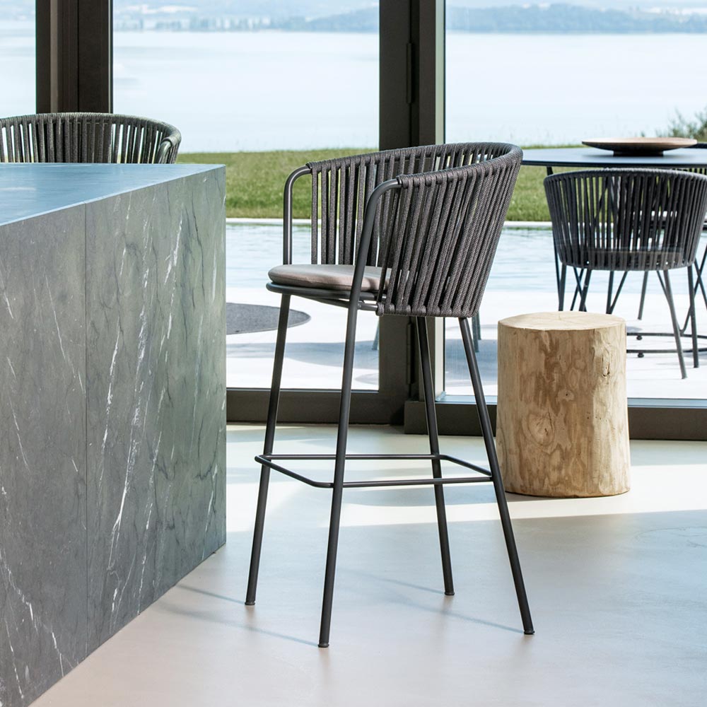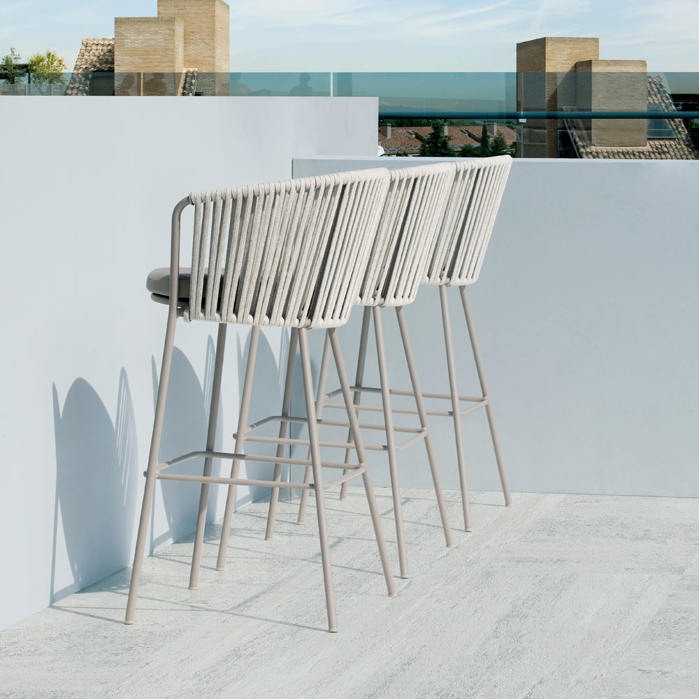 يضمن هيكل الفولاذ المقاوم للصدأ المتانة ومقاومة العوامل الجوية، بينما يُضفي نسيج الحبل لمسةً من الخفة والأناقة، مُحيطًا المقعد براحةٍ مُريحة. يضمن التصميم المريح والخطوط المُستديرة تجربة جلوسٍ مُمتعة ومريحة.