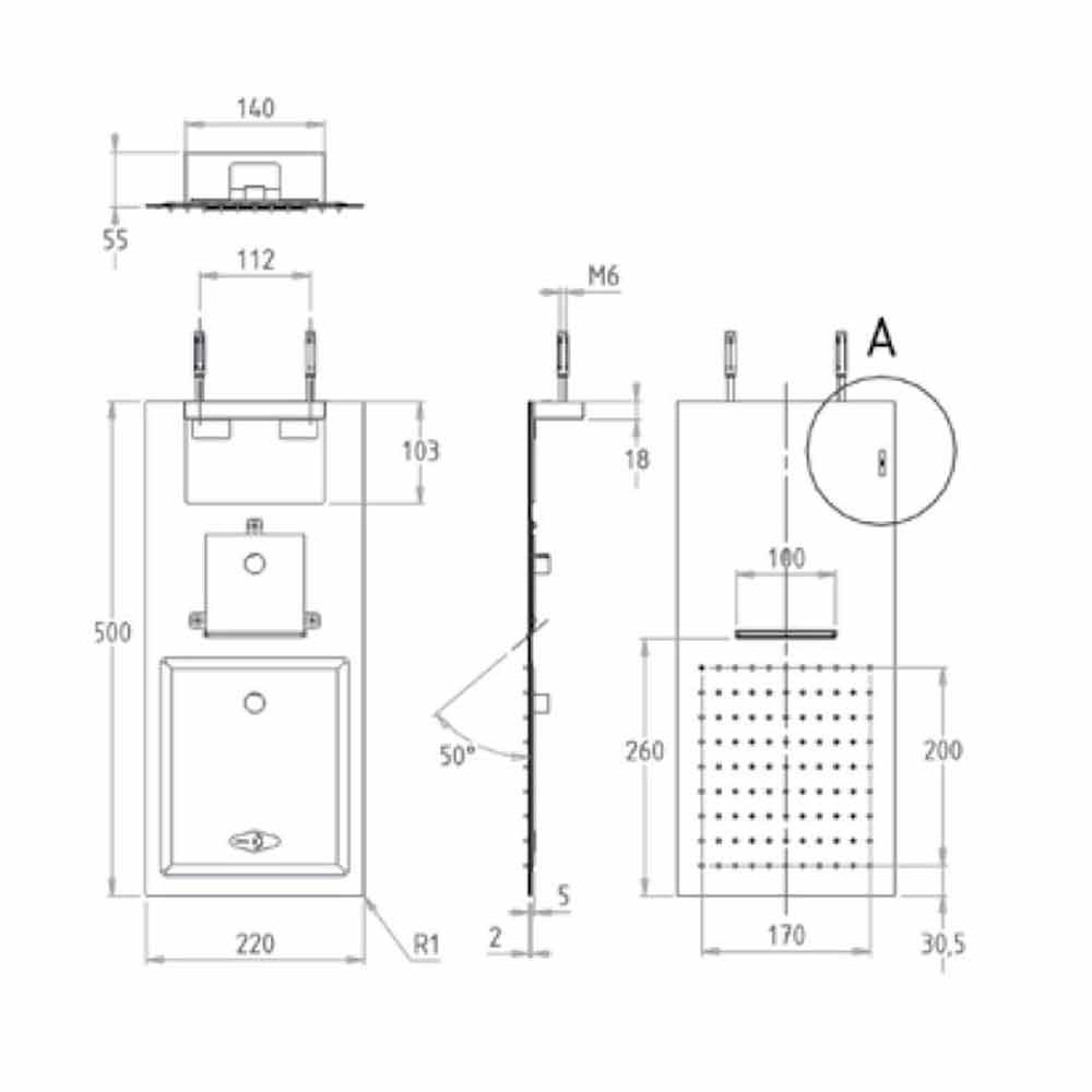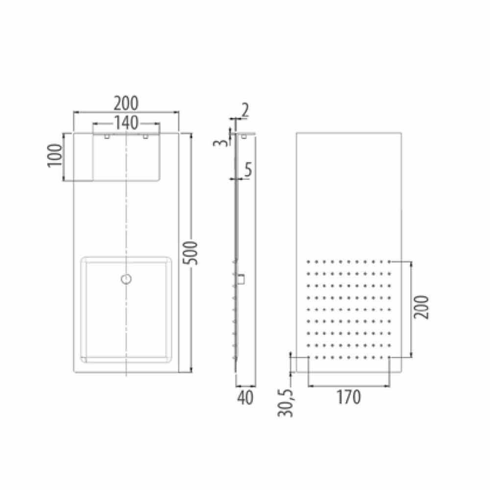 رأس دش مستطيل الشكل من الفولاذ فائق النحافة مع فوهة مزدوجة صنع في إيطاليا.