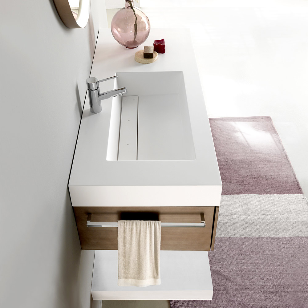 أثاث حمام معلق من خشب MDF والمعادن والحجر، فاخر مصنوع في إيطاليا.