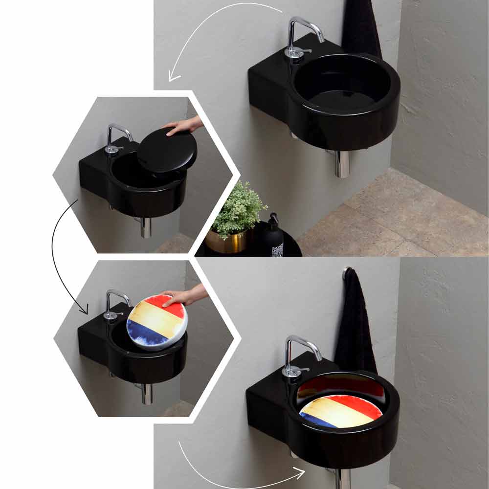 حوض غسيل حديث معلق / سطح عمل تم إنتاجه في إيطاليا Tor تور هو حوض غسيل بسيط بتصميم متعدد الاستخدامات قابل للتكيف مع جميع الأذواق والاحتياجات الجمالية للغرف بفضل التشطيبات العديدة للوحة. اللوحة قابلة للإزالة ومتوفرة بالتشطيبات التالية: - أسود؛ - مع علم البرازيل؛ - مع علم كندا؛ - مع علم سويسرا؛ - مع علم ألمانيا؛ - مع علم فرنسا؛ - مع علم إيطاليا؛ - مع علم النرويج؛ - مع علم السويد؛ - مع علم المملكة المتحدة؛ - مع علم الولايات المتحدة الأمريكية.