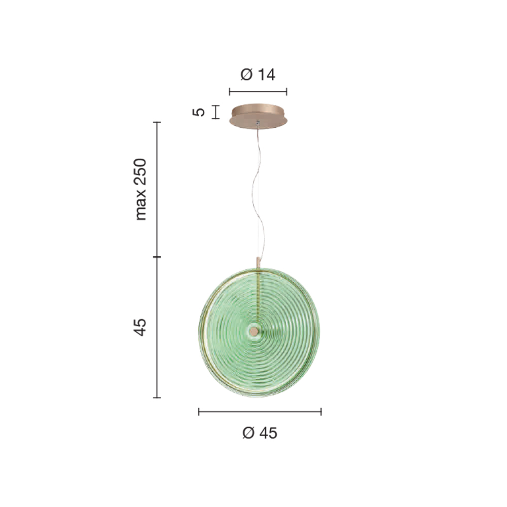 مصباح معلقتم إنتاجه بالكامل في إيطاليا مصنوع من معدن مطلي باللون الذهبيوزجاج مزين بخطوط متحدة المركز مع ضوء LED وكابل بطول قابل للتعديل . يهدف هذا المنتج إلى تعزيز التقاليد من خلال نهج عصري ، حيث تجتمع الأناقة والرقي والابتكار لابتكار تصاميم جديدة تُضفي على أي بيئة لمسةً من الذوق الرفيع والطابع المميز. ومن أبرز مميزاته تميز الأشكالوجودة المواد المستخدمةوتميز مصدر الإضاءة .