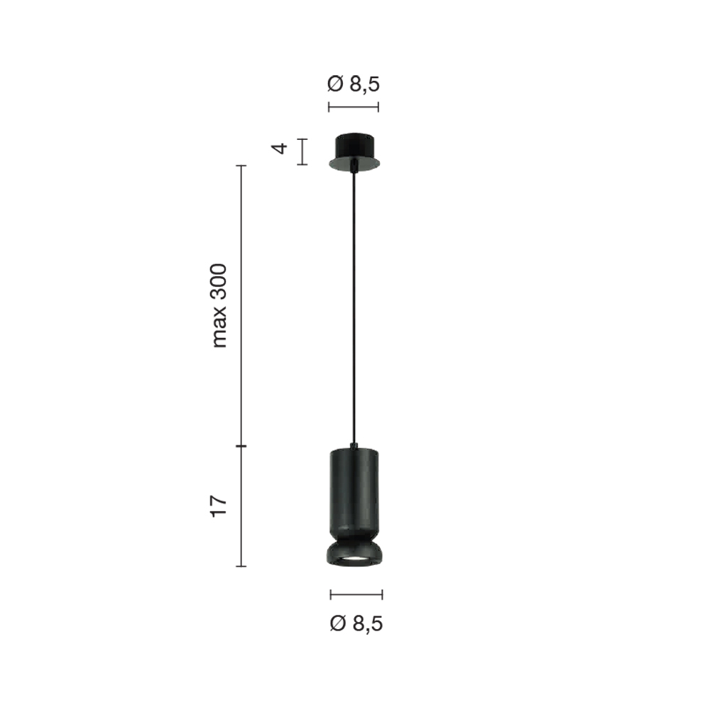 الضوء: القطر 8.5 سم × الارتفاع 17 سم