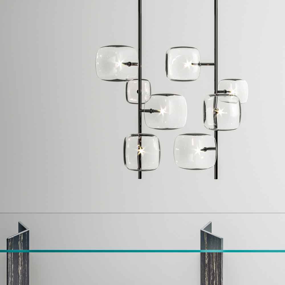 هذا المصباح المعلقمصنوع في إيطاليا ، ويمثل فكرة إضاءة فائقة الأناقة والتأثير، تُسهم في خلق بيئة ذات أجواء راقية وعصرية. هيكله المعدني المصقول يتضمن 4 أو 5 مكعبات مستديرة من زجاج بيركس شفاف منفوخ، حسب الحجم المُختار. كما أنه مثالي للتركيبات المتعددة على ارتفاعات مختلفة، مما يُضفي لمسةً من الحيويةوالرقي على تصميم المنتج. مصباح LED G4 3000K ومصباح قابل للتعتيم.