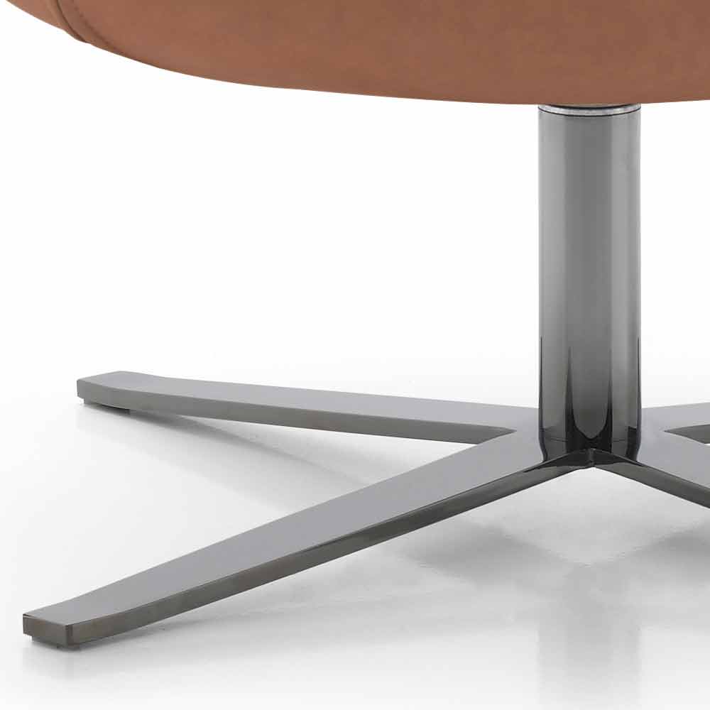 كرسي دوار مصنوع من الجلد والقماش مع قاعدة معدنية صنع في إيطاليا.
