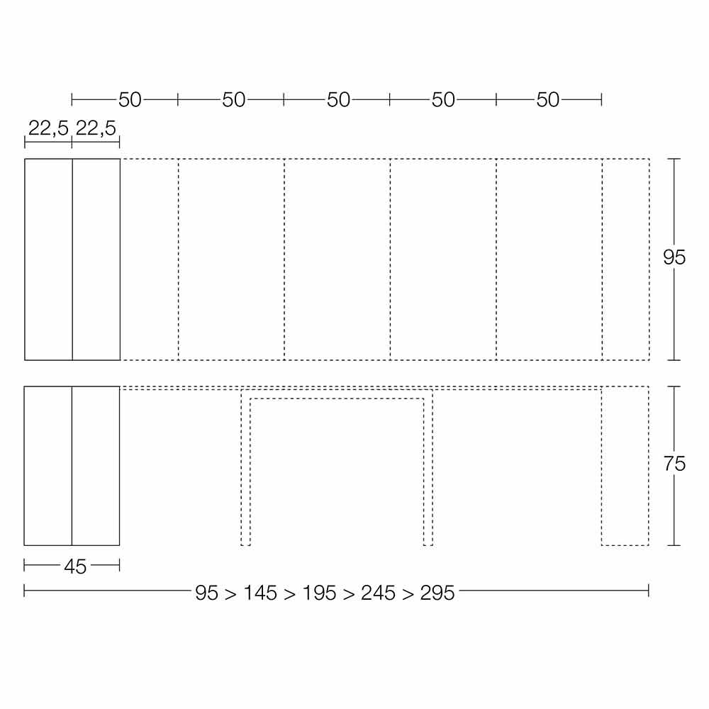 وحدة التحكم: عرض 95 × عمق 45 × ارتفاع 75 سم؛ الطاولة: طول 95/145/195 × عمق 95 × ارتفاع 75 سم