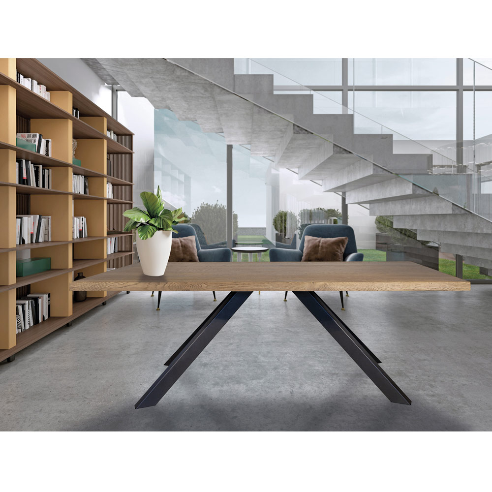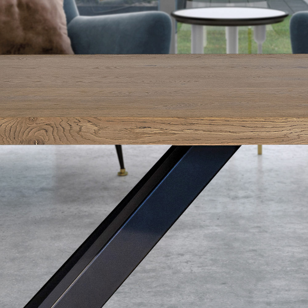 طاولة خشبية من خشب البلوط المقشر والمعقود وقاعدة معدنية صنع في إيطاليا.