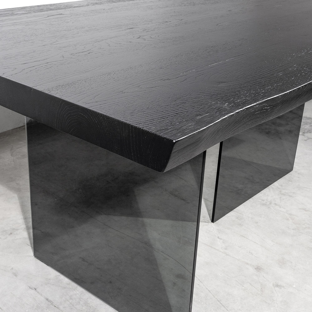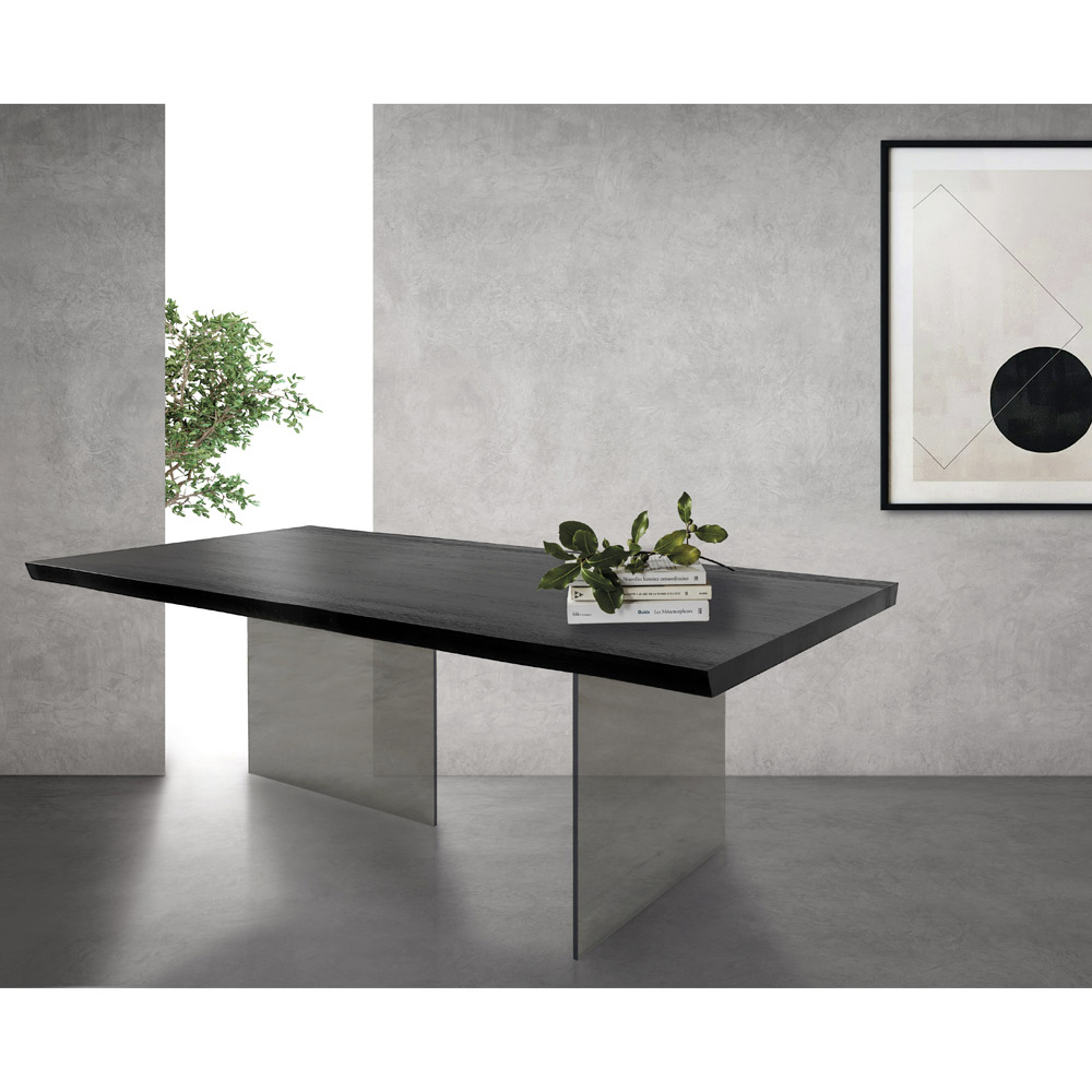 طاولة خشبية مطلية بخشب البلوط المعقود وقاعدة من الكريستال صنع في إيطاليا.