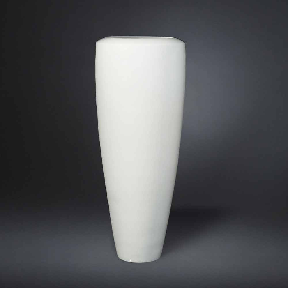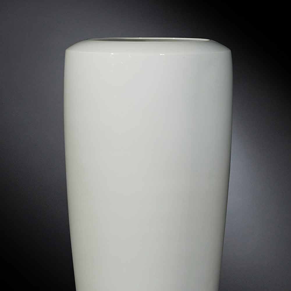 مزهرية زخرفية طويلة من السيراميك الأبيض غير اللامع مصنوعة يدويًا في إيطاليا.