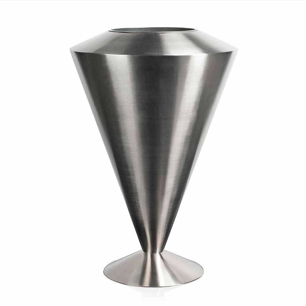 مزهرية ديكورية داخلية من الفولاذ الساتان مصنوعة في إيطاليا.
