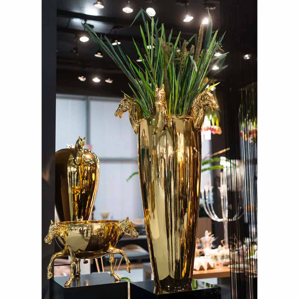 حرفيين خبراء في هذا المجال منذ أجيال. تُضفي هذه المزهرية لمسة جمالية أساسية وأنيقة، تُثريها وتجعلها فريدة بفضل تفاصيلها الأصلية على شكل حصان في الجزء العلوي، مما يُبرز روحها الإبداعية ويجعلها حلاً مثاليًا للبيئات الكلاسيكية والحديثة، حيث تُبدع تناقضات رائعة بين مختلف الأنماط. يُعزز