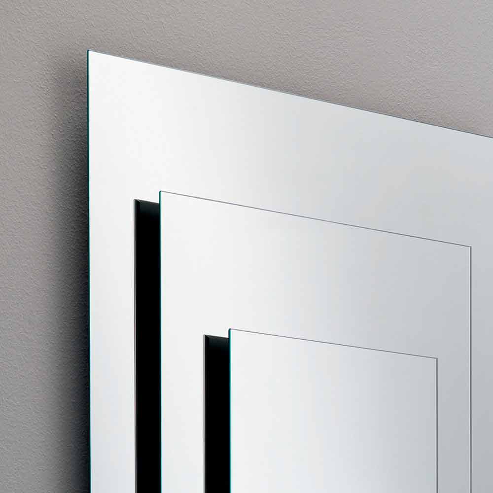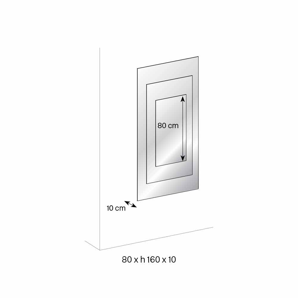 تتكون مرآة الحائط هذه من ثلاث لوحات متداخلة ومتباعدة مدعومة بهيكل خشبي أسود .