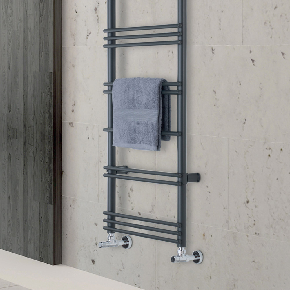 سخان منشفة هيدروليكيباللون الأسود النفاث مصنوع من الفولاذ الكربوني يتكون من سلسلة من العناصر الأفقية بقطر 1.6 سم ملحومة على مشعبات رأسية بقطر 3.5 سم، مصنوع بالكامل في إيطاليا مع مجموعة تثبيت الحائط وصمام التهوية والسدادة العمياء المضمنة . في هذا المنتج، يتوازن التصميم والوظيفة، ليُشكّلا عنصرًا ليس فقط جميلًا من الناحية الجمالية، بل عمليًا وفعّالًا أيضًا. إنه قطعة أثاث حقيقية قادرة على إضفاء لمسة شخصية على البيئات وتكاملها، ضامنةً بذلك جودة الصناعة الإيطالية.