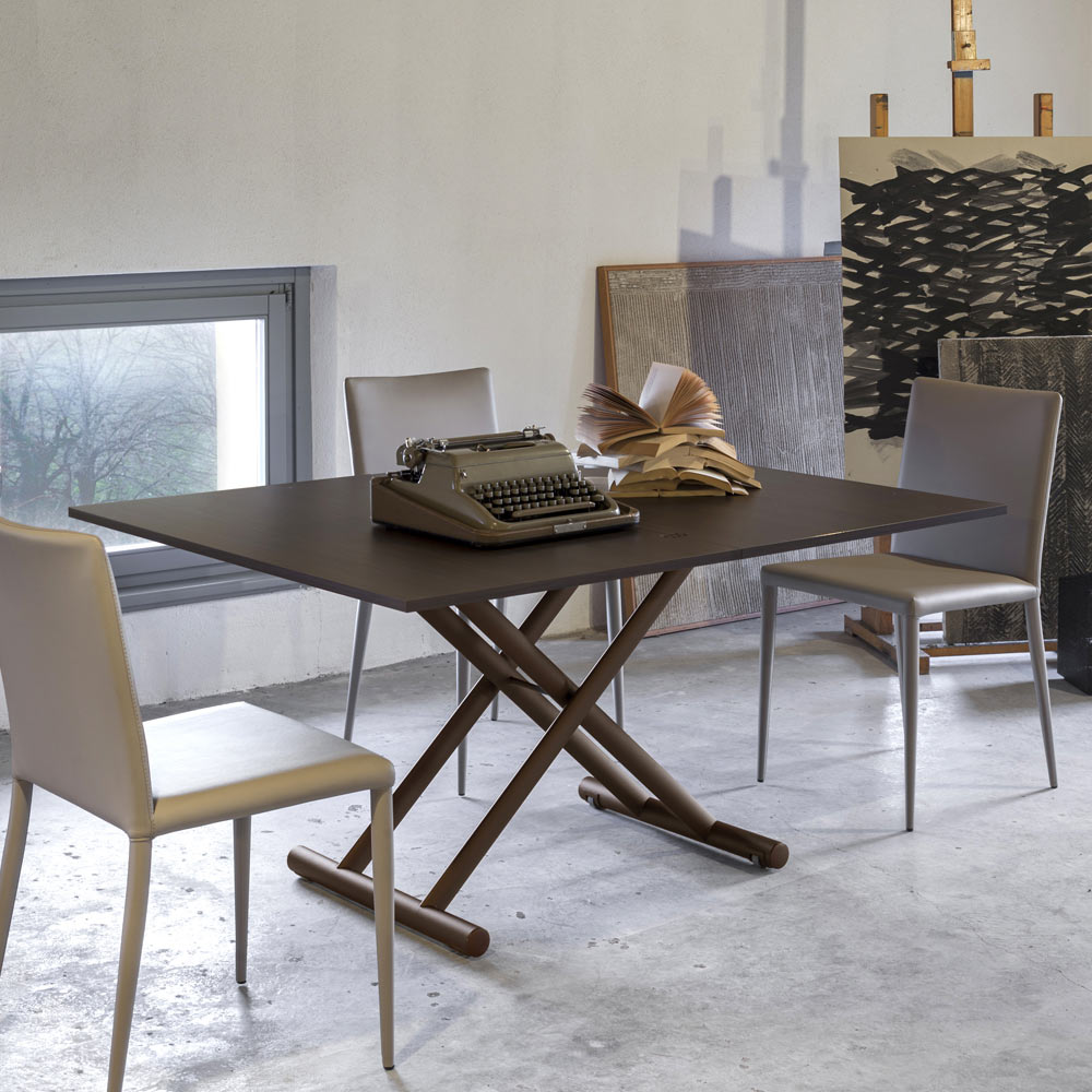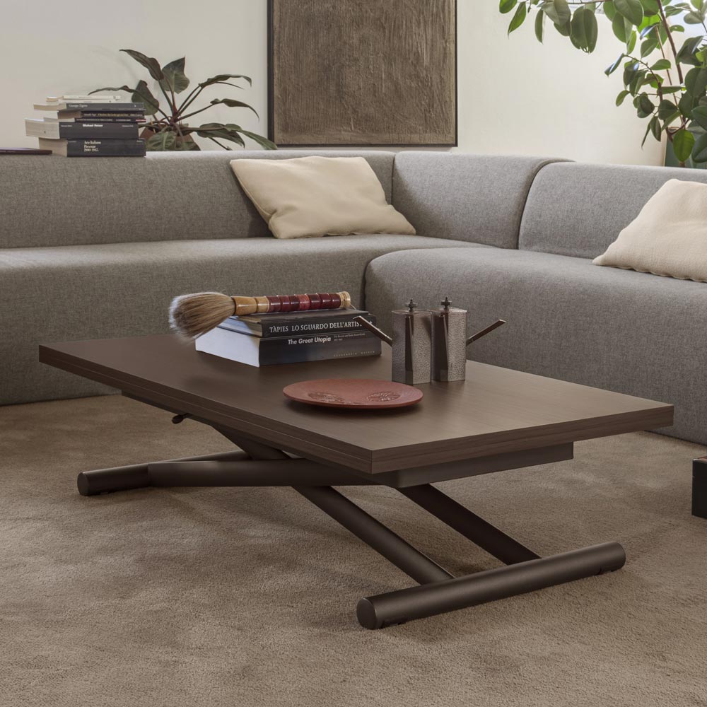 طاولة قهوة قابلة للتحويل من الخشب الرقائقي والمعادن صنع في إيطاليا.