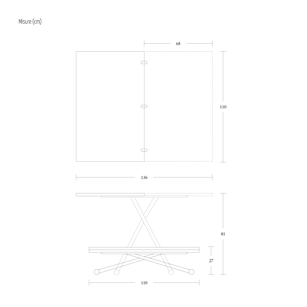 طاولة قهوة قابلة للتحويل، بسطح من خشب الميلامين وقاعدة من معدن مطلي باللون البرونزي المنقوش، مصنوعة يدويًا في إيطاليا . تتميز هذه الطاولة بخطوط أنيقة وأساسية، وتصميم متعدد الاستخدامات ، وهي مناسبة لتأثيث أي نمط من البيئات، بفضل حجمها الصغير، ما يجعلها مثالية لتحسين استغلال المساحات في غرف الطعام أو غرف المعيشة ذات المساحات الصغيرة.
