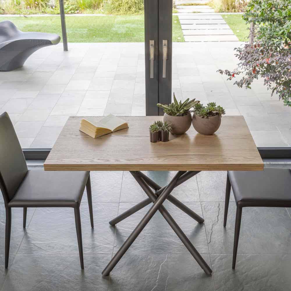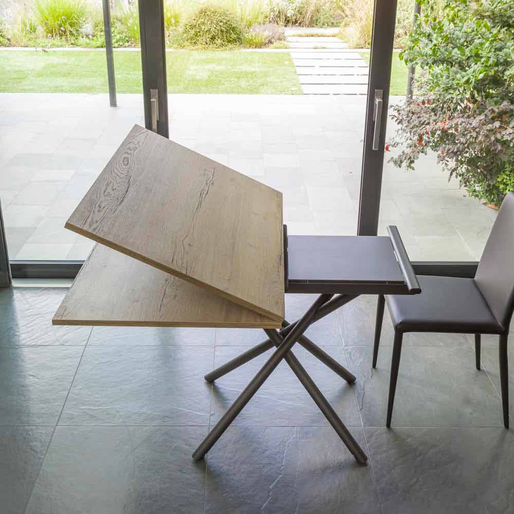 طاولة قهوة قابلة للتحويل مصنوعة من المعدن والخشب في إيطاليا.