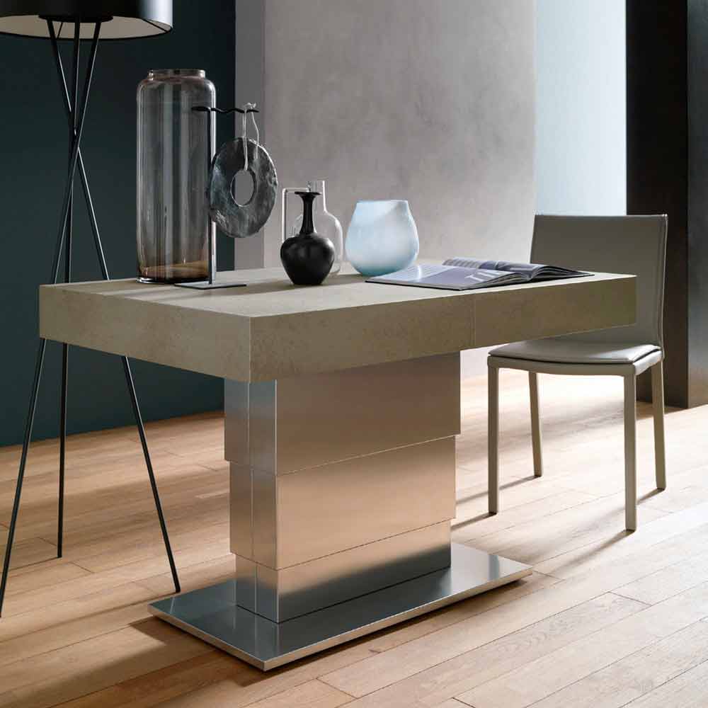 طاولة قهوة قابلة للتحويل إلى طاولة طعام مع سطح بتأثير الملاط صنع في إيطاليا.