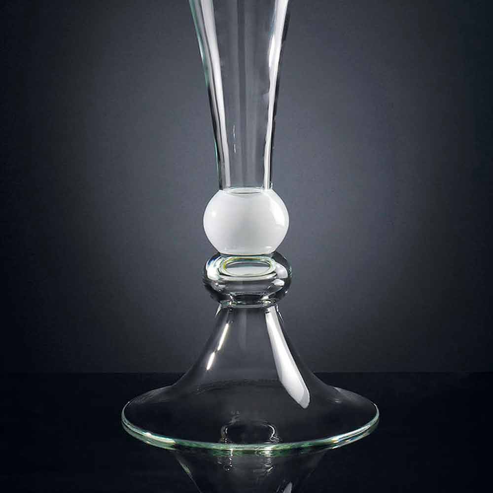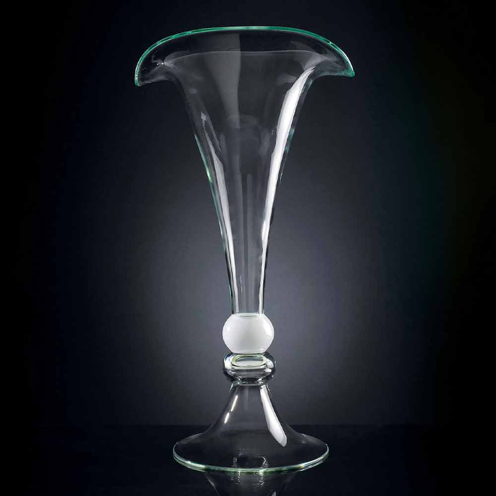 مزهرية ديكورية للديكورات الداخلية مصنوعة من زجاج شفاف مع كرة زجاجية بيضاء ، مصنوعة يدويًا في إيطاليا 100% . تتميز هذه المزهرية بحرفيتها العالية التي تزيد من قيمتها، لتُضفي لمسةً حصريةوعالية الجودة ، وتُكملها لمسةً راقية وراقية ، بفضل أناقة الزجاج الخالدة. تصميم مثالي لمختلف البيئات، من أثاث المنزل إلى الفنادق والمطاعم ومناطق التعاقد والمنتجعات الصحية، بالإضافة إلى أماكن إقامة الفعاليات وحفلات الزفاف.