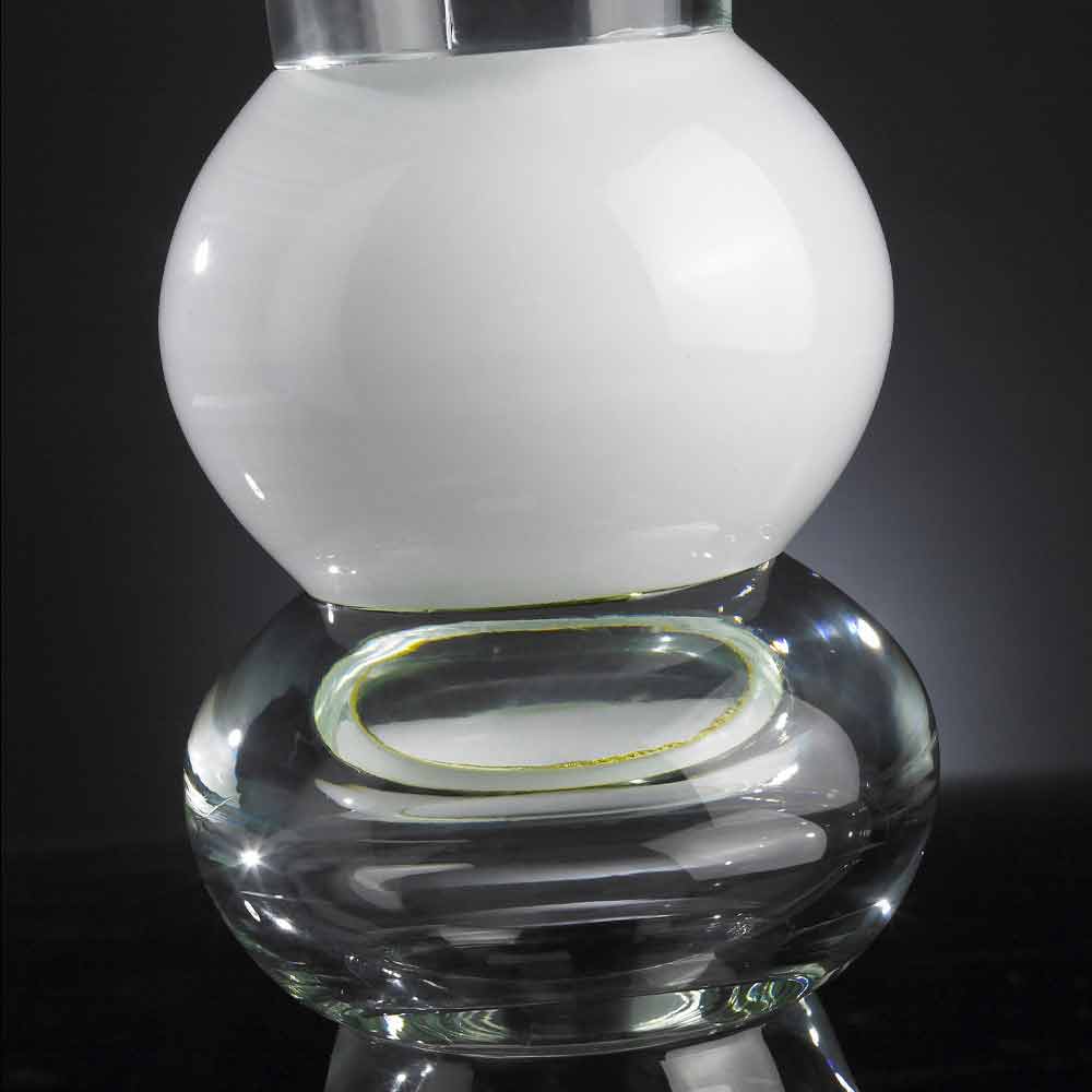مزهرية زخرفية داخلية من الزجاج الأبيض الشفاف صنع في إيطاليا.