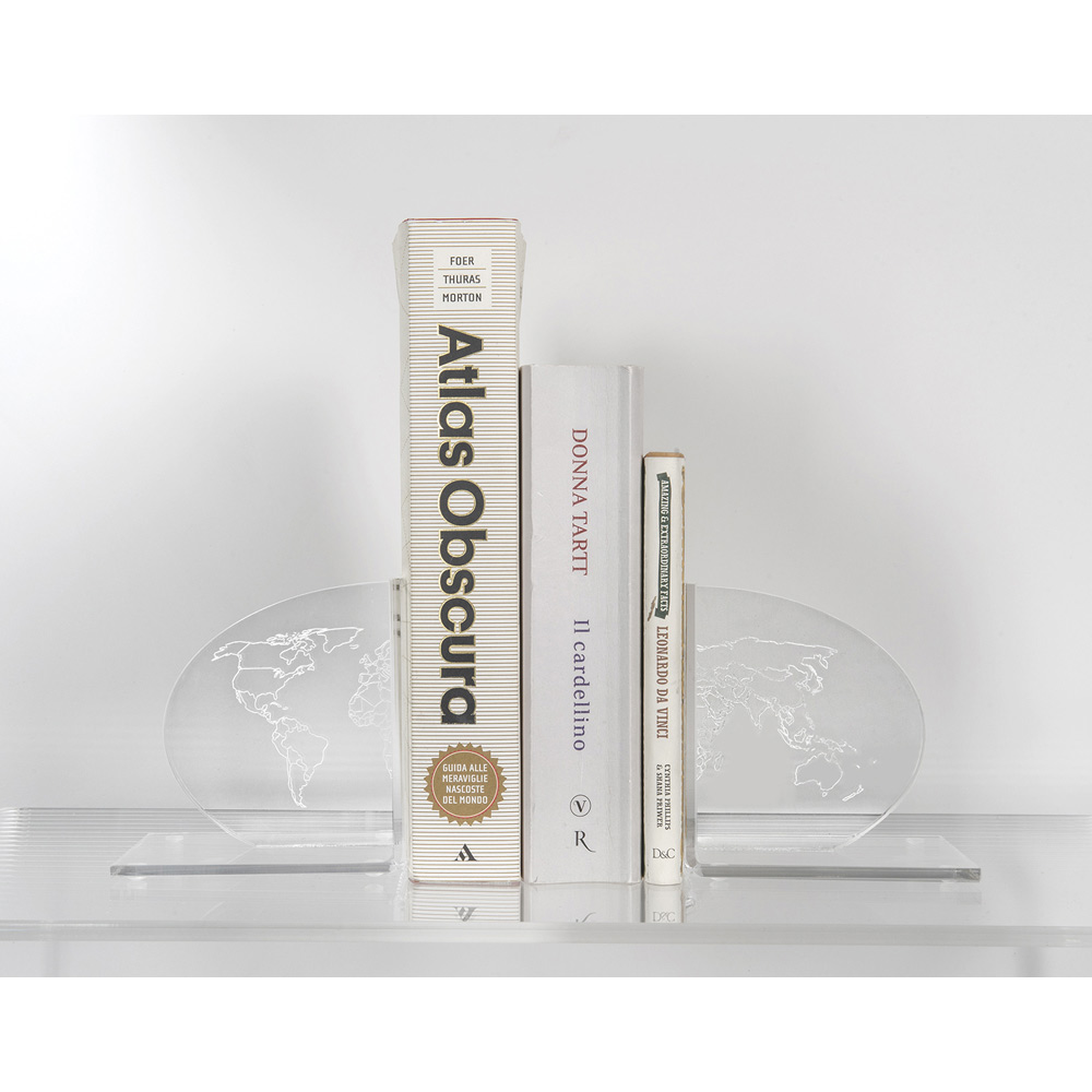 دعامات كتب من زجاج شبكي شفاف، تصميم خريطة، قطعتين صنع في إيطاليا.