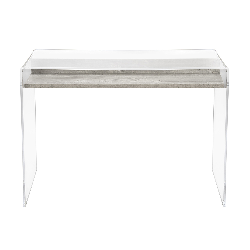رف من زجاج شبكي شفاف مع جوهر خشبي رمادي