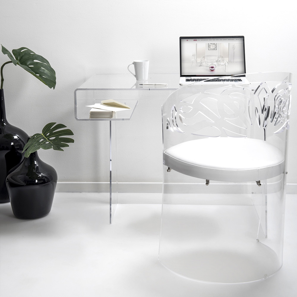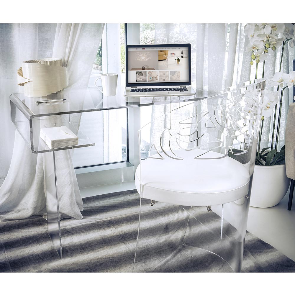 مكتببتصميم عملي مصنوع بالكامل من زجاج PMMAمصنوع ١٠٠٪ من بوليمر بكر بلمسة نهائية شفافة. صُممت هذه القطعة من الأثاث لمن يحتاجون إلى سطح دعم بسيط وأساسي للدراسة أو العمل من المنزل؛ فهي في الوقت نفسه قطعة أثاث عصريةوبسيطةوعملية للغاية، تُثري الأثاث المحيط بها بلمسة شخصية وذوق رفيع .