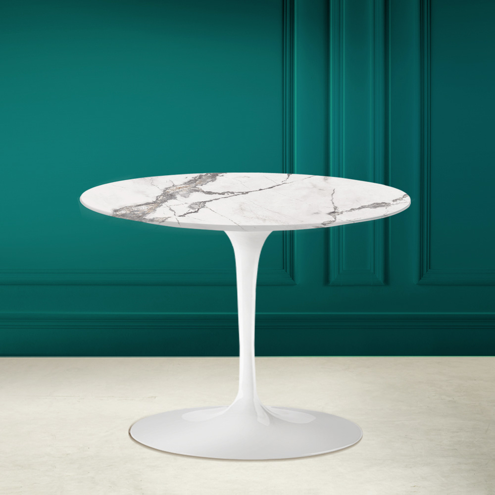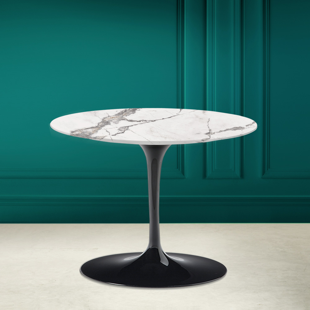 طاولة قهوة مستديرة مع سطح سيراميك غير مرئي وقاعدة من الألومنيوم المصقول صنع في إيطاليا