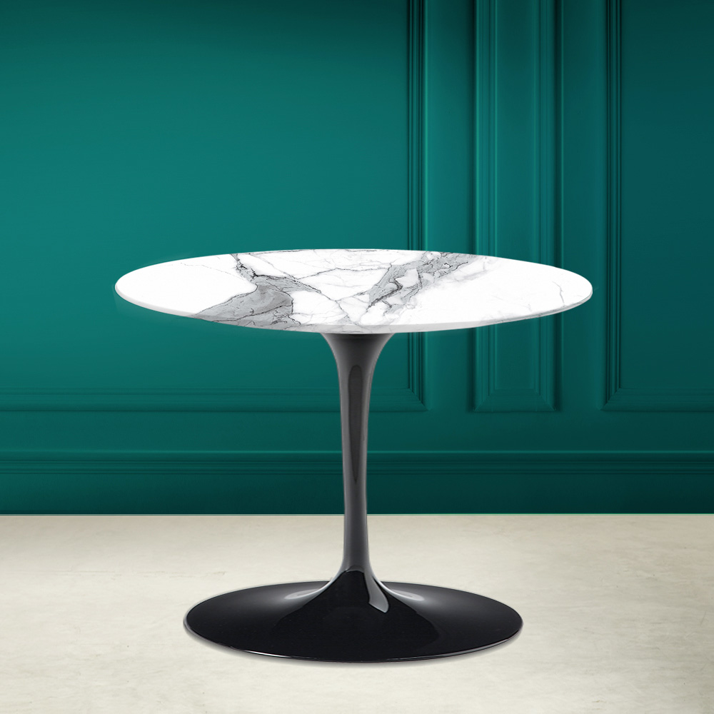 طاولة قهوة بسطح دائري من سيراميك ستاتواريو عالي الجودة، بتأثير رخام ستاتواريو مطفي ، وقاعدة من الألومنيوم المصقول، مصنوعة بالكامل في إيطاليا . بفضل لمساتها البسيطة والراقية ، يُمكن دمج هذه القطعة الفنية مع أي نوع من الأثاث في أي بيئة معيشة. ميزتها الرئيسية هي مادة السطح، أي سيراميك ستاتواريو ألتيسيمو، الذي يُعدّ حليفًا مثاليًا لجعل البيئة أكثر ترحيبًا ودفئًا بفضل رسوماته المعقدة والثمينة . يُشكّل التناغم بين السيراميك والألمنيوم المصقول مزيجًا مثاليًا يجعل هذا المنتج مناسبًا لجميع المناسبات والمواقف.