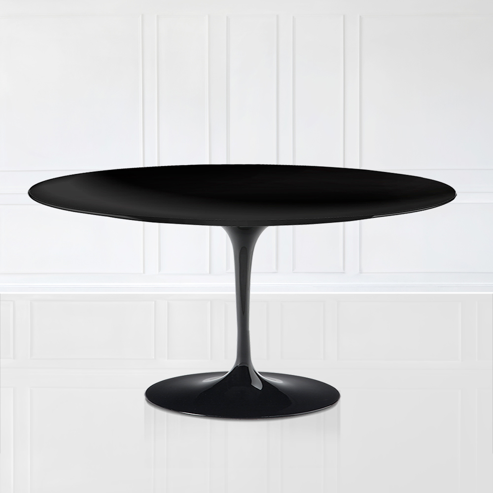 طاولة طعام مصنوعة بالكامل في إيطاليا ، بسطح بيضاوي من اللامينيت السائل الأسود وقاعدة من الألومنيوم الأسود المصقول . تناسب هذه الطاولة جميع الاستخدامات والتصاميم. شكلها البيضاوي المبتكر مثالي لاستضافة عدة أشخاص، وقاعدة مثالية لوضع عدة كراسي. بفضل لمساتها وخطوطها البسيطة والأنيقة، يمكن دمجها في جميع أنماط الأثاث، من الحديث إلى الأنيق إلى الكلاسيكي. هذا العنصر هو الخيار الأمثل لمن يعشقون إضفاء لمسة من الذوق والأصالة على كل غرفة في المنزل.