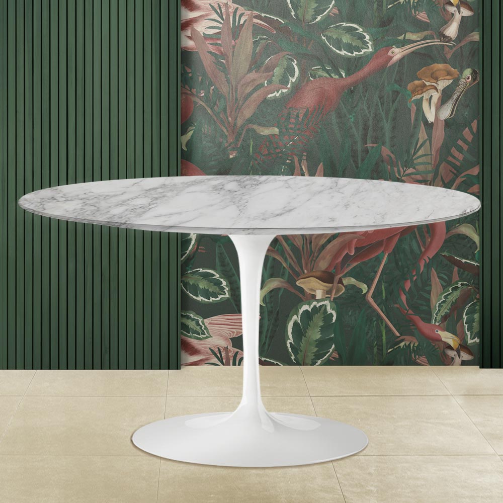 طاولة قهوة ذات سطح بيضاوي من الرخام العربي وقاعدة من الألومنيوم المصقول مصنوعة في إيطاليا