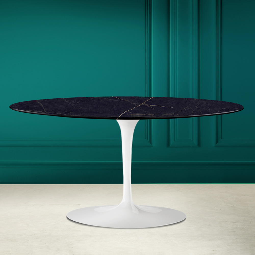 طاولة قهوة ذات سطح بيضاوي من سيراميك Noir Laurent وقاعدة من الألومنيوم المصقول، صنع في إيطاليا
